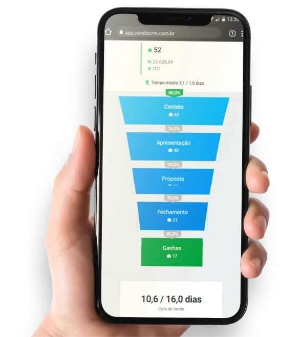 Com o Vendo CRM, você terá controle sobre toda a jornada do seu cliente, desde o primeiro contato até a fidelização do seu cliente.