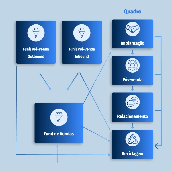 Contamos com um time de sucesso do cliente, que possui uma grande experiência e expertise em processos comerciais. Trabalhamos de forma proativa realizando com você e seu time reuniões de alinhamento, análise de resultados, treinamentos de aprimoramento, repasse de novidades, sempre buscando alinhar o seu processo com as funcionalidades e configurações do sistema para que você consiga extrair o melhor resultado.