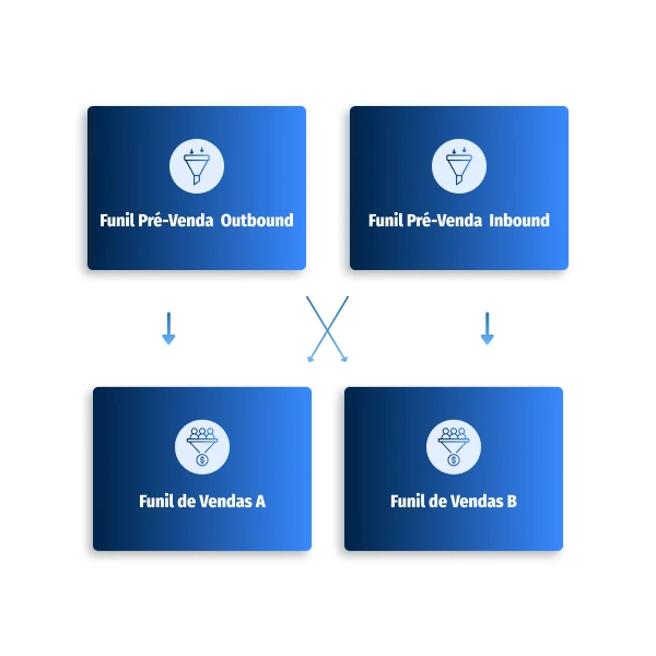 Você pode ter múltiplos funis de pré-venda e venda. Na passagem de bastão podemos passar a negociação qualificada para o time do Funil de Vendas A ou B.