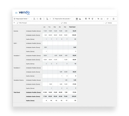 Tenha as principais informações com nossos relatórios, neles listamos informações de clientes, atividades, negociações, tarefas do quadro, propostas, produtos vendidos, leads, entre outros.