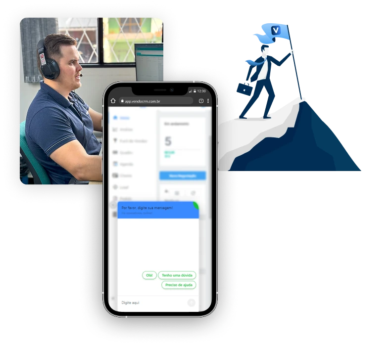 É hora da implantação! Nosso time de implantação irá conduzir um processo de treinamento e configuração do Vendo CRM. Trabalhamos para que você e seu time colham os primeiros resultados o mais rápido possível com o uso do Vendo CRM e possam seguir uma linha de evolução rumo ao sucesso.